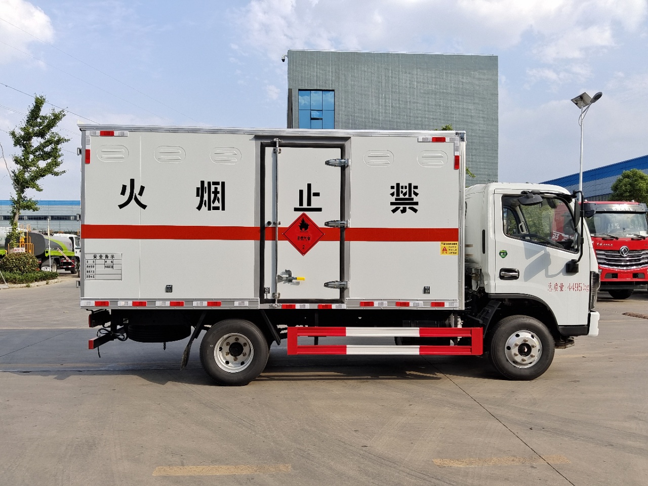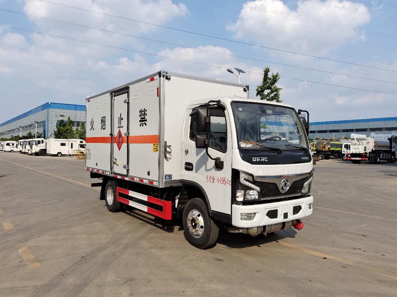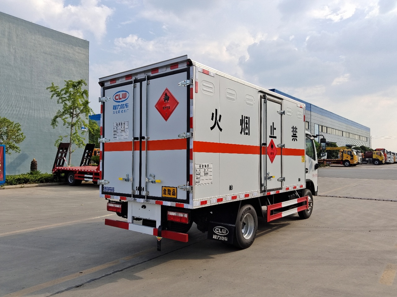 | 貨箱配置 | 廂體為雙層金屬骨架結(jié)構(gòu),外板采用冷軋鋼板,中間填充阻燃泡沫,內(nèi)飾為鋁板。底板為平板上鋪防靜電膠皮。廂內(nèi)兩側(cè)加裝固定貨物臥環(huán),門框帶防盜報(bào)警器,頂部帶煙霧報(bào)警器,廂體右側(cè)選裝側(cè)門,隨車配2個(gè)滅火器,危險(xiǎn)標(biāo)志牌,防火帽,危險(xiǎn)品三角頂燈。(也可用瓦楞板) | ||