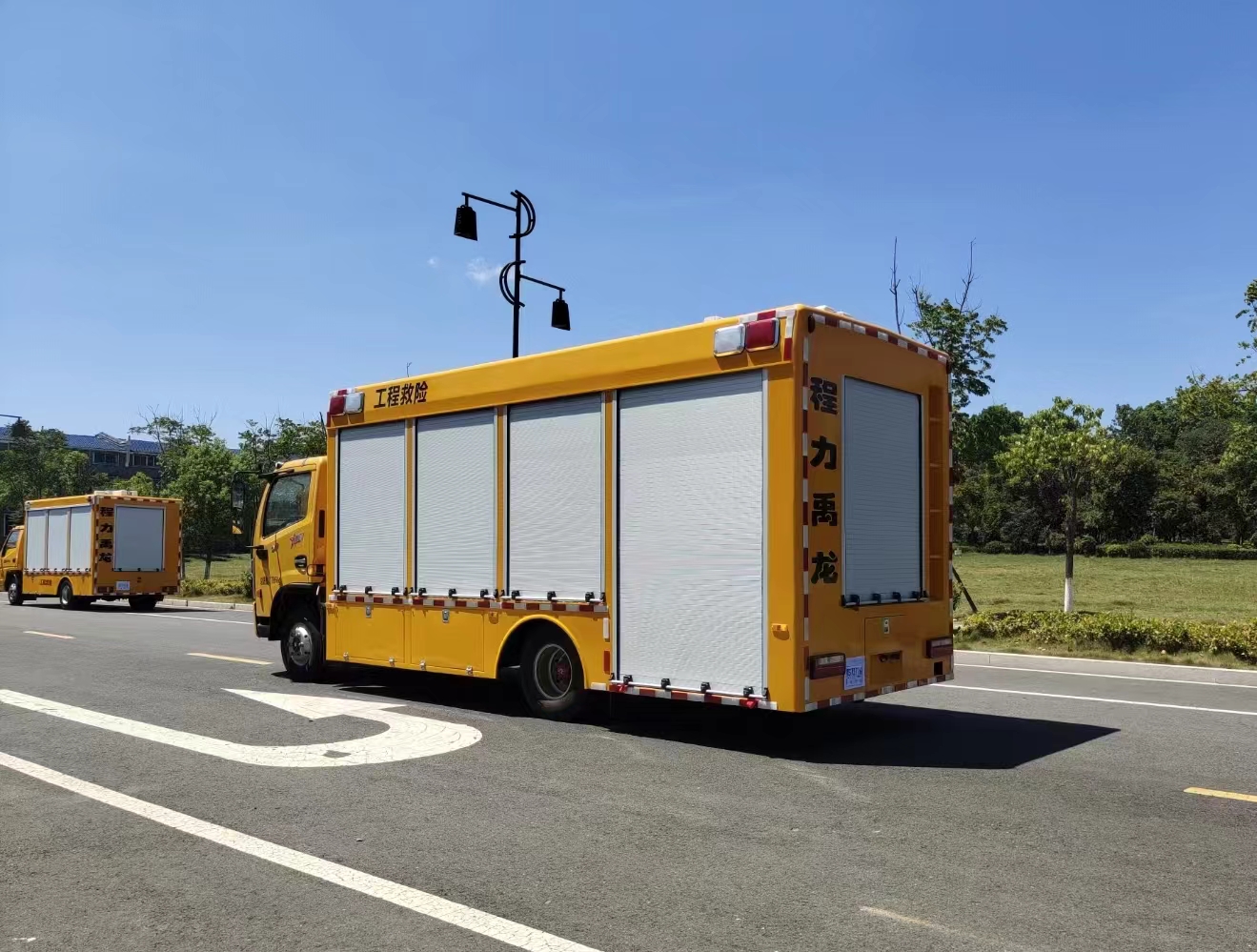 上裝配置  1、廂體外形尺寸根據(jù)實際公告標(biāo)準(zhǔn)。 廂體:具備運(yùn)輸、防雨、防火、阻燃、防塵、防銹、降燥,隔震、長期抗震結(jié)構(gòu)。外部鋼材為優(yōu)質(zhì)冷軋鋼板,表面處理平整,內(nèi)襯優(yōu)質(zhì)冷軋鋼板折彎骨架,強(qiáng)度牢固,配重合理。 2、廂體一體化鋼體結(jié)構(gòu)設(shè)計, 頂部平坦。廂體采用骨架式夾層形式,外蒙皮采用厚1.5mm優(yōu)質(zhì)防銹處理的汽車專用冷軋鋼板,中間骨架采用防銹處理后的鋼管焊接,頂層、側(cè)圍內(nèi)、外層之間填充長時間使用對人體無害的防火阻燃環(huán)保吸音棉,外層鋪蓋一層阻燃金屬布,內(nèi)飾采用0.8mm厚網(wǎng)孔板。底板采用鋼結(jié)構(gòu)底框架,上表面鋪厚2mm花紋鋼板。 3、車輛廂體采用整體包覆式,廂體兩側(cè)下部設(shè)置裙邊式,全封閉式結(jié)構(gòu),頂部為圓弧型,尾部有轉(zhuǎn)向燈、剎車燈、尾燈、霧燈,箱體表面光滑平整。車廂靠駕駛室前部為休息室,休息室內(nèi)帶折疊坐椅及折疊桌,往后為機(jī)組室,機(jī)組室左、右側(cè)布置進(jìn)排風(fēng)百窗,設(shè)置機(jī)組檢修門一個,下置登車踏步梯,車廂后端為后為卷簾門。右側(cè)排風(fēng)百葉窗下部為維修觀察艙門。左側(cè)下圍設(shè)置有工具箱及功能艙門等。右側(cè)下圍設(shè)置有汽車油箱艙、液壓控制艙等。 4、車廂尾部配置標(biāo)準(zhǔn)儲物貨架讓出水帶、加長電纜等附件存放有序、互不干涉,讓緊急排水搶險變得更加快捷、有效。 5、廂體噴漆:工程黃,與車頭同一顏色; 6、最終的門數(shù),形式,打開方式嚴(yán)格按照合同要求依據(jù)程力公告生產(chǎn);