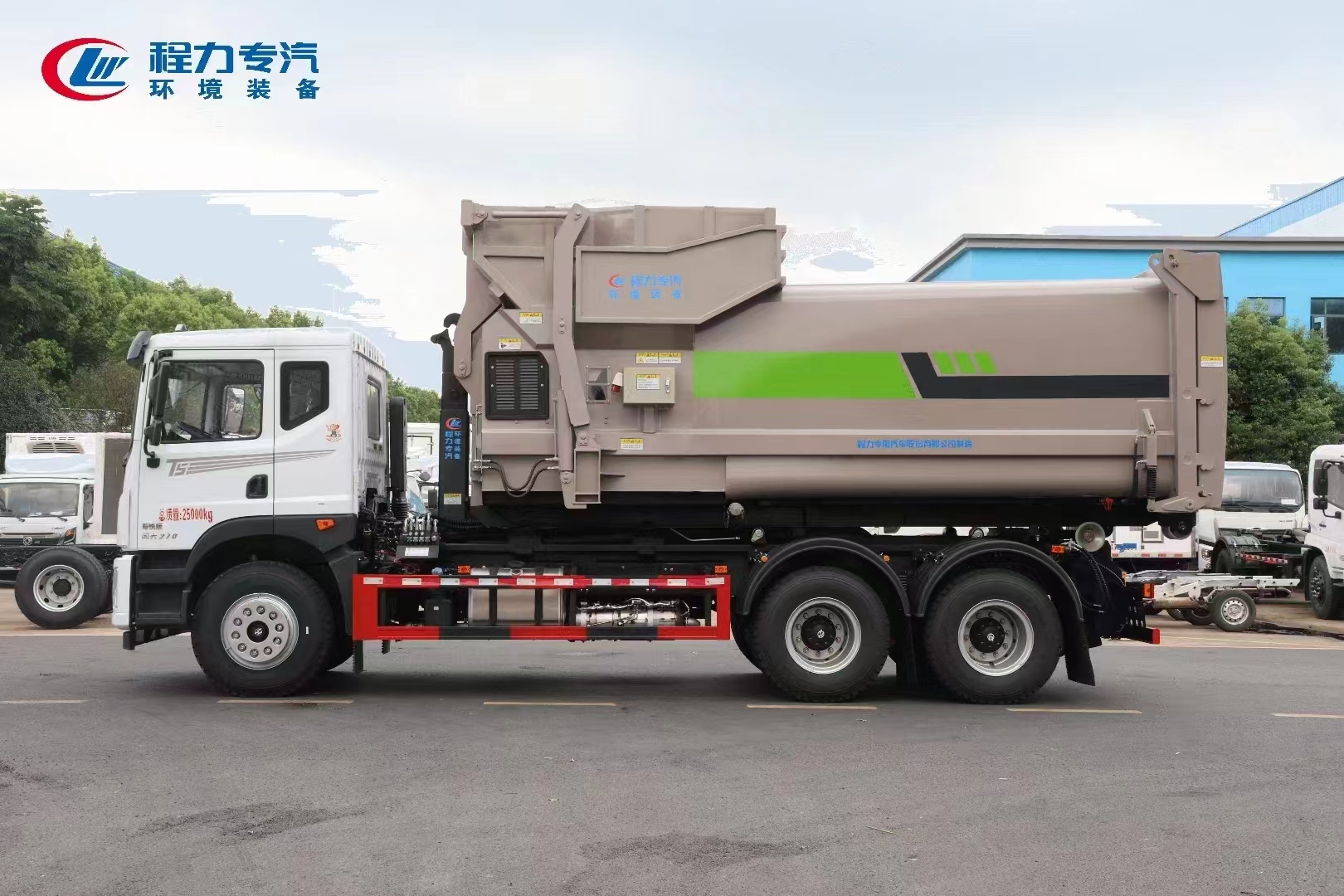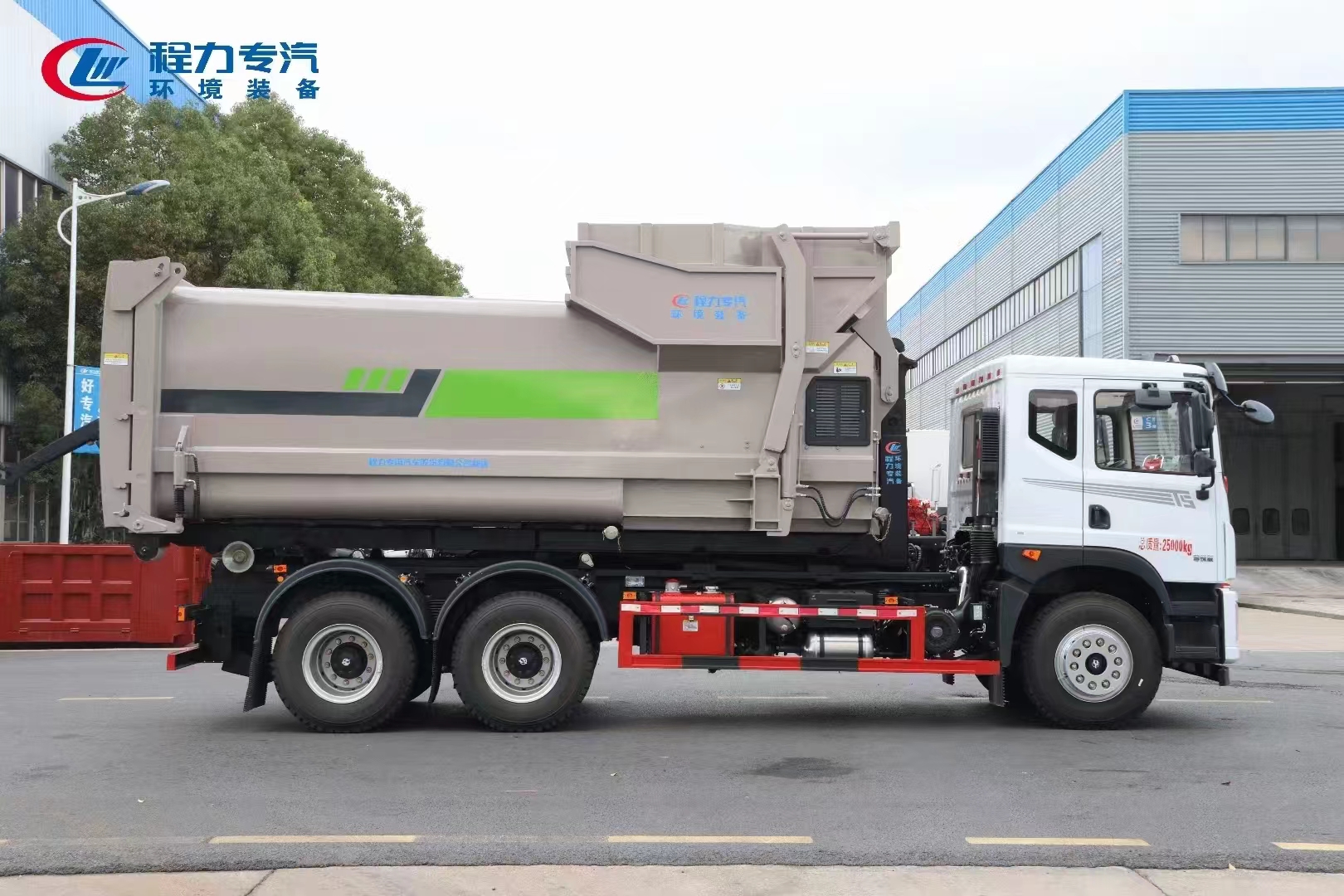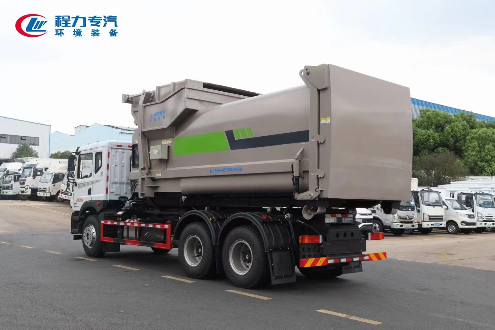 程力專汽東風(fēng)華神后雙橋勾臂垃圾車+移動壓縮箱