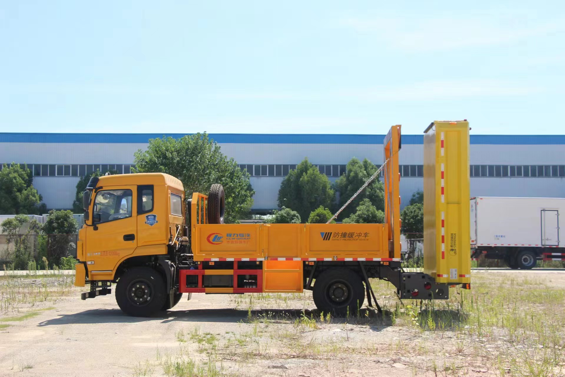 | 上裝配置 | 采用Q235國標(biāo)邊3mm底板花紋板4mm厚,箱體后部防撞緩沖模塊包采用國際知名技術(shù)產(chǎn)品100E防撞緩 沖模塊,防撞緩沖吸能模塊主要由車載防撞緩沖墊和導(dǎo)向標(biāo)志架組成,充當(dāng)施工作業(yè)車輛后方的緩沖衛(wèi)士。 如若發(fā)生追尾事故,能夠在肇事車輛和前方施工作業(yè)區(qū)域之間構(gòu)建一個(gè)緩沖區(qū)域,通過機(jī)具結(jié)構(gòu)變形吸收撞 擊的能量,最大限度地降低被保護(hù)人員及設(shè)備遭到碰撞的幾率。高性能液壓系統(tǒng),可實(shí)現(xiàn)快速舉升和落下操 作,方便設(shè)備運(yùn)輸轉(zhuǎn)場,一鍵啟動功能,舉升和落下防撞裝置,當(dāng)防撞裝置未完全落下到工作位置或舉升到 垂直運(yùn)輸位置時(shí),會有自動警告音提示。 | ||