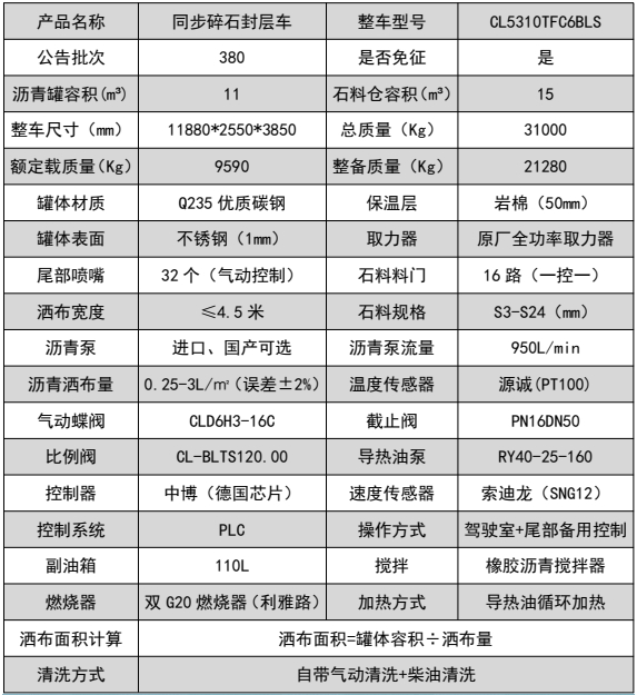 ??????湖北程力汽車:程力CL5310TFC6BLS型陜汽德龍前四后八瀝青碎石同步封層車產(chǎn)品型號及參數(shù)配置,程力CL5310TFC6BLS型陜汽德龍前四后八瀝青碎石同步封層車高清圖片,程力汽車系列程力CL5310TFC6BLS型陜汽德龍前四后八瀝青碎石同步封層車最新報價請撥打客服熱線。車輛主要配置 產(chǎn)品商標 程力牌 公告批次 382(擴展) 產(chǎn)品名稱 同步碎石封層車 產(chǎn)品型號 CL5310TFC6BLS 總質(zhì)量(Kg) 31000 罐體容積(m3) 額定載質(zhì)量(Kg) 9590,9525 外形尺寸(mm) 11080,11280,11880 × 2550 × 385...