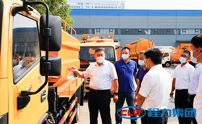 庚即,代表團(tuán)一行饒有興趣的參觀了程力高端抑塵車專業(yè)廠的疫情消毒霧炮車,程國(guó)強(qiáng)書記與執(zhí)行總經(jīng)理朱武分別向代表團(tuán)介紹了程力自己研發(fā)的無(wú)副發(fā)動(dòng)機(jī)的智能化多功能消毒防疫車產(chǎn)品性能和市場(chǎng)銷售情況。