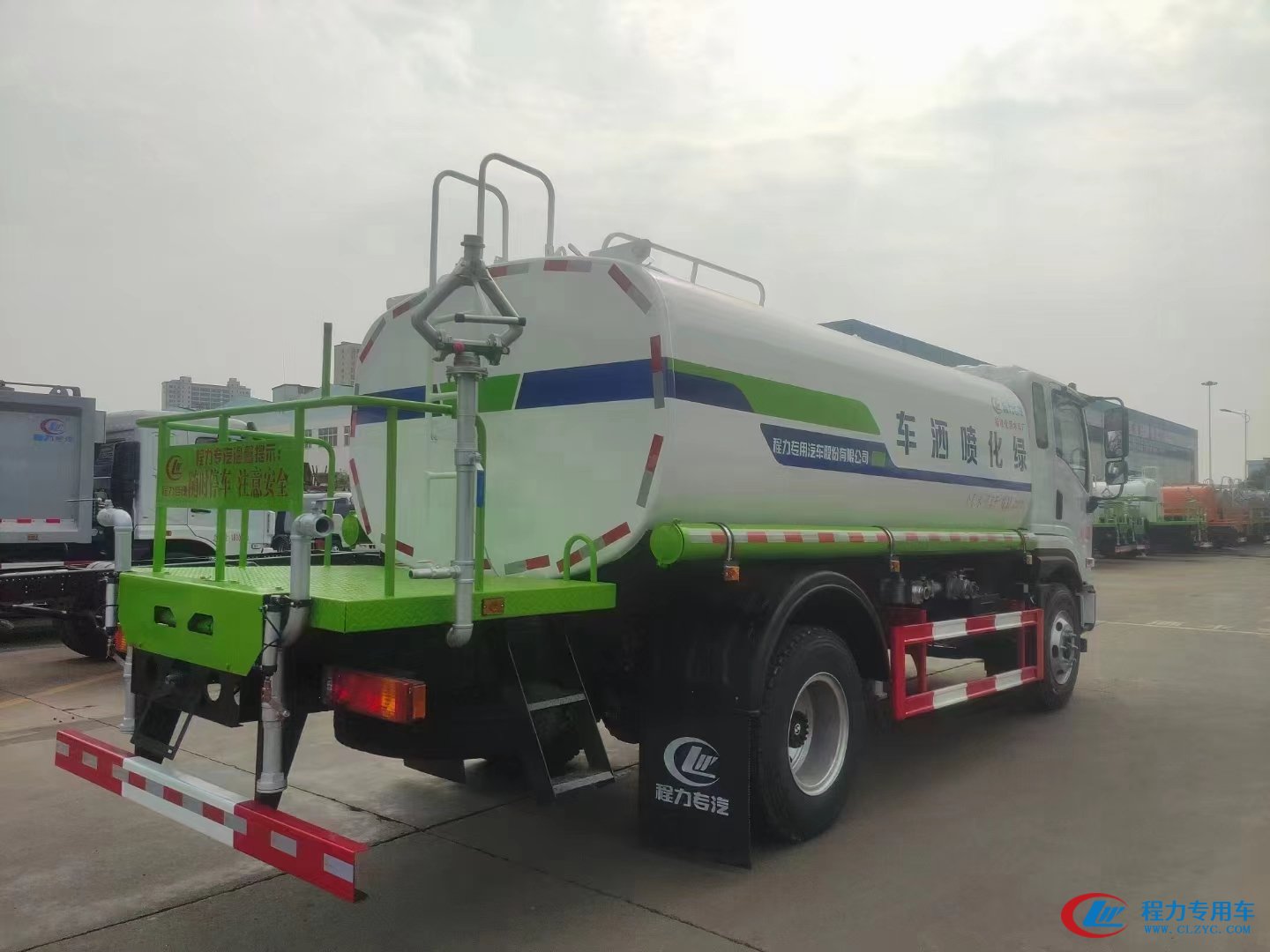 | 上裝配置 | 上裝武鋼優(yōu)質(zhì)碳鋼板,容積12立方,厚度4mm,封頭5mm,前后封頭機(jī)器人自動焊,內(nèi)設(shè)隔浪板,帶液位計(jì), 配程力原廠大功率灑水泵,帶駕駛室電控操作,前沖后灑4個新式不銹鋼切斷閥,前沖 后灑 側(cè)噴 后高炮,后高炮可調(diào)節(jié)柱狀 雨?duì)詈挽F狀,新式?jīng)_孔工作平臺,主管道加粗,副管道全采用優(yōu)質(zhì)鍍鋅管道,帶自吸自排,自流閥,消防接頭,過濾裝置,邊燈帶電,其他標(biāo)配… | ||